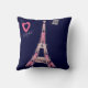 Niedliches Liebe Paris-Katzenentwurfsmuster Throwkissen. Eiffel-Turm, Herzen, Porto-Briefmarke und eine französische Katze. Sehr französisch, sehr Paris.
