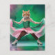 Niedliche Ice Skaten Cat in Rosa und Grün Postkarte