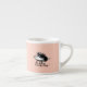 Charmante Schwarz-Weiß-Igel-Illustration mit handgezeichnetem Text: "Ich bin heute prickl Gefühl!". Auf einem rosa Hintergrund. An manchen Tagen brauchen sogar glückliche Igel einen Espresso-Schub! Ein Tiggy-Design.