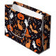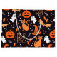 Nahtloses Muster von Halloween illustriertem Cartoon auf schwarzem Hintergrund. Zu den Figuren des Cartoons zählen Kürbis, Gespenster, Fledermäuse, Süßigkeiten, Spinnennetze und Sterne. Die Icons sind alle in einem einfachen, kartoonischen Stil gezeichnet. Das Muster wird nahtlos wiederholt, sodass es zum Füllen eines großen Bereichs wie einer Wand, einem Stoff oder einem Stück Papier verwendet werden kann, was gut für Party-Hüte, Packpapiere, Packtaschen und vieles mehr ist. Probieren Sie diesen halben Geschenksack aus, Sie werden es nicht bereuen. Sie können dieses Design auf jedes zazzle Produkt übertragen, wie Sie möchten, wenn Sie wissen, wie, oder Sie können mir eine Nachricht senden. Ich werde dieses Design für Sie übertragen.