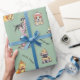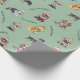 Dieses niedliche gemusterte Weihnachtsverpackungspapier zeigt verschiedene illustrierte Hunde mit festlichen Winterurlaubshüten und Schals. Es beinhaltet psonnige Weihnachtsbriefe (Happy Howlidays, Paw Humbug, Furry and Bright, Yappy Holidays und Santa Claws), die Sie verlassen können, wie es ist oder mit Ihrem eigenen Familiennamen oder anderen Feiertagen Grußkarten anpassen können. Der Hintergrund ist blassgrün und passt zu jeder Weihnachtsdekoration.