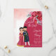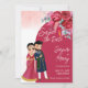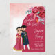Niedliche indische Hochzeit Save the Date Einladungskarte Vorlage. Viva magenta Farbe, indisches Brautpaar, bordeauxrote Rose.