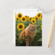 Niedliche Ingwerkatze im Sonnenblumenfeld Postkarte für Postkreuzung