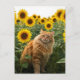 Niedliche Ingwer Katze in Sonnenblumen Postkarte
