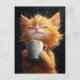 Niedliche Ingwer Kitty mit Kaffee Postkarte