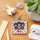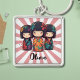 Dieser personalisierte Schlüsselanhänger verfügt über 3 niedliche, farbenfrohe japanische Kokeshi-Puppen.