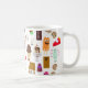 Ein niedlicher illustrierter Cartoon fröhlich grinsende Speisenauswahl Spaß Backwaren und Desserts fröhlich lustige ästhetische Dessert Charakter Eis Kegel, Schokolade, Räucher und andere süße Leckereien Muster illustrierte Design Zuhause-Kaffee, Tee oder heiße Kakaogetränke Keramik Tasse. Holen Sie sich heute eine niedliche Desserts-Getränketasse.