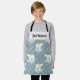 Lassen Sie sich in dieser Winter- und Feiertagssaison mit diesen Kindern kochen und lassen Sie sie auf dieser Schürze, die Sie mit einem Namen persönlich gestalten können, auf diese Art Spaß machen. Dieses Design zeichnet sich durch ein cooles Tiermuster mit Eisbären mit gelben Pullover aus. Weich graugrüner Hintergrund mit weißen Schneeflocken und Eisdecken für den Eisbären, um diese Schürze für Jungen zu vervollständigen.