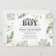 Wilde, ruhige und elegante Jungs Safari Baby Dusche Einladung mit einer Giraffe, Goldeffekt und grünen Blätter. Ideal für Jungen mit Baby-Dusche