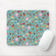 Mousepad mit einer extrem niedlichen Junk Food Illustration. Dieses lustige Muster-Design hat Burger, Pommes frites, Hot Dogs, Pizza, Eis, Popcorn und so viele andere niedliche Doodles.