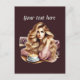 Niedliche Kaffeefrau ergänzt Text Postkarte