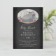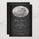 Rustikale Babydusche mit einem niedlichen Babyhippo auf dem Bild einer Tafel.
