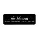 Elegante schwarze Rücksendeadressen-Aufkleber mit Ihrem Namen in einem niedlichen Kalligraphie-Skript-Schriftart mit der unten angegebenen Adresse. Mit dem Anpassungstool können Sie Hintergrund- und Schriftart-Farben in beliebiger Farbe ändern.