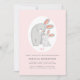 Niedliches Kaninchen Mutter und sonnige Baby pink Baby Mädchen Dusche Einladung. Diese bezaubernde Baby Dusche Einladung zeigt eine süße Kaninchenmutter neben ihrem kleinen Hasen, mit zwei rosa Herzen in einem weißen ovalen Rahmen geschmückt. Der Text ist elegant in Grau präsentiert, mit einem weichen, rosafarbenen Hintergrund. Auf der Rückseite fügt ein zauberhaftes Pink-Polka-Dot-Muster eine reizvolle Touch hinzu.