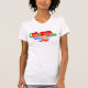 © Sunny Mars Designs - Cape Town Niedlich Womens T - Shirt - Diese coolen, maßgeschneiderten, südafrikanischen Reisefrauen maßgeschneiderten T-Shirts zeigen eine bunte abstrakte niedliche lustige Cartoon Vektorgrafik des Tafelbergs von Kapstadt, des Ozeans und einer kleinen Yacht, in südafrikanischen Flaggenfarben.
