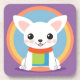 Eine hübsche Cartoon-Illustration eines weißen Hundes mit einem fröhlichen Ausdruck, in einer lebhaften und farbenfrohen Kulisse, strahlend Wärme und Verspieltheit, perfekt für Dekoration oder Kinderthemen.