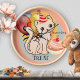 Wanduhr mit einem niedlichen Kätzchen mit festlichen Ballons und einem Kuchen. Toll als Geburtstagsgeschenk für einen Katzenliebhaber.