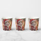 Papiertasse mit einem niedlichen Kätzchen in einem festlichen Weihnachtsoutfit. (Tun Sie das bitte nicht mit Ihrer Katze auf der Zuhause)