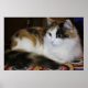 Niedliche Katze auf farbenfrohe Rug Gelb Blau Rot Poster