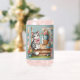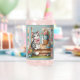 Dieses charmante Design besticht durch eine bezaubernde, graue Tischkatze mit hellen Augen und einem rosa Gingham-Bogen. Sie sitzt süß auf einer rustikalen Veranda, umgeben von kitzigen Details. Die gemütliche, pastellfarbene Ästhetik wird mit Vintagen Pitchers, geflochtenen Körben und malerischen Schuhen auf Holztreppen zum Leben erweckt. Gerahmt von einem farbenfrohen Stechwork-Stepprahmen, fühlt sich die ganze Szene an wie eine Momentaufnahme eines friedlichen Frühlingsmorgens in einer liebevoll kuratierten Zuhause. Dieses Kunstwerk ist perfekt für jeden, der in Pastellfarben, Eleganz des Shabby Chic oder die Wärme nostalgischer Landschaftsbilder gezeichnet ist. Es verleiht dem Ganzen und der sanften Freude, wo immer es gezeigt wird. Die sanfte Aquarellkunst und die aufwändigen Details machen es zu einem idealen Ort, um Frühlingsvibes und ein Gefühl für langes, gemütliches Leben zu wecken. AI generierte Kunstwerke.