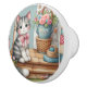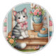 Niedliche Katze auf Veranda mit Blume & Patchwork Keramikknauf