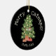 Die Niedliche Katze auf Weihnachtsbaum frohe Catnaps! Das Schwarze Keramik Ornament ist der perfekte Urlaubssake für Katzenliebhaber. Es ist mit einer orangefarbenen Katze aufgewühlt und auf einem festlich dekorierten Weihnachtsbaum mit gelben Ornamenten und zwei Geschenkartikeln geschmückt darunter. Oberhalb der gemütlichen Szene erscheint die Phrase "Merry Catnaps!" in cremefarbenen Buchstaben vor einem schwarzen Hintergrund, mit einer anpassbaren Zeile unten, um den Namen und das Jahr Ihrer Katze hinzuzufügen. Auf der Rückseite des Hauses befindet sich Platz für ein Foto oder ein Haustier, was es zu einer gefühlvollen und stilvollen Ergänzung Ihres Urlaubshotels macht.
