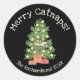 Niedliche Katze auf Weihnachtsbaum frohe Catnaps! Runder Aufkleber