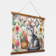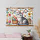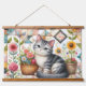 Niedliche Katze im Blumengeflecht Wandteppich Mit Holzrahmen