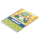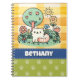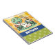 Ein hübsches Notizbuch eines niedlichen doodle Art Cartoon Kätzchen, das in einem schönen Garten in ruhiger Lage sitzt. Die Katze ist eine helle Creme mit orangefarbenen Streifen entlang ihres Körpers und Schwanzes. Sie ruht sich auf grünem Gras, umgeben von rosa, blauen und gelben Blumen. Im Hintergrund ist ein grüner Baum mit herzförmigen Früchten und einer fröhlich gelben Sonne vor einem blass blauen Himmel. Diese skurrile Darstellung würde jeden in jedem Alter Anzug machen, besonders Kinder und Katzenliebhaber. Der Hintergrund der Abbildung ist ein gelbes Karo. Unterhalb der Abbildung befindet sich ein blauer Band mit weißen Buchstaben, um Ihren Namen oder anderen Text zu personalisieren. Unten ist ein grüner Raum mit hellgrünen Pfoten Drucke.