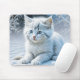Hübsche ai generierte Winterszene mit einem süß-weißen, flauschigen Kätzchen, das im Schnee spielt.
