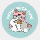 Niedliche Katze im Snow Gear mit Snowman Art Runder Aufkleber