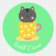 Ein niedlicher Cartoon einer niedlichen Katze im Teacup-Design mit einem modernen bunten Illustrations-Cartoon, der für einen Schüler geeignet ist. Niedliches Katzenthema. Gut gemacht Aufkleber für einen Lehrer.