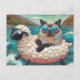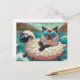 Niedliche Katze Mit auf Schafsfloatie im Bergsee Postkarte