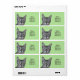 Adressetikett mit einer niedlichen Katze, die eine Brille auf einem hellgrünen Hintergrund trägt.