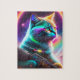 Farbenfrohe Niedliche Astronautenkatze mit Neonleuchten und Laserleuchten, Regenbogenfarben im Fantasiewelten-Sci-Fi-Stil, buntes Katzenposter für Kinderzimmer, Katzenpuzzle,