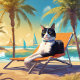 Niedliche Katze mit Sonnenbrille auf Urlaub