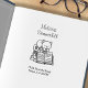 Niedliche Katze oben auf einer Buchstapeladresse Gummistempel