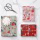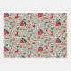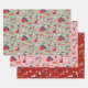 Niedliche Katze Rosa Grün Retro Muster Weihnachten Geschenkpapier Set
