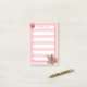 Niedliche Ingwer Tabby Kätzchen und Rose auf rosa und weiße Streifen Post-it Notes. Text kann personalisiert sein.