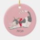 Ein schönes Ornament mit einem stylischen grauen Weihnachtskätzchen Kätzchen auf rosa Hintergrund. Original-Kunstwerk von Caroline Bonne Müller.