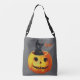 Niedliche Katze zu KürbisHalloween Tragetaschen Mit Langen Trägern