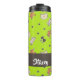 Fügen Sie Ihren Namen auf diesem niedlichen Katzen- und Pfotenmuster auf grünem Hintergrund hinzu.