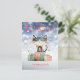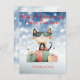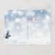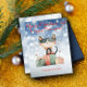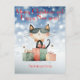 Niedliches Katzenjubiläum auf blauem Hintergrund. Winterbaum und Schneeflocke.
