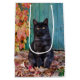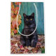 Ein eigenartiges, schwarzes Rauchkätzchen, das vor einer blauen Holztür mit roten Blätter sitzt, erforscht das ländliche Leben auf einem alten Bauernhof im Herbst. Foto von Katho Menden aufgenommen. Diese Geschenktasche ist eine Geschenkidee für Katzen- und Tierliebhaber: http://www.zazzle.com/kathom_photo - Sie können Ihren eigenen Text hinzufügen, indem Sie auf den Knopf Anpassen drücken. Wenn Sie ein Design sehen, das nicht auf Ihrem gewünschten Produkt verfügbar ist, zögern Sie bitte nicht, mich über meinen Shop zu kontaktieren und ich werde Ihnen gerne das Produkt für Sie erstellen.