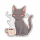 Niedliche Kawaii-Katze mit Kaffee-Cup Aufkleber