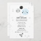 Dieses einfache und schicke Design der Baby Shower Einladung ist der perfekte Weg, Ihre Schwester, Ihre Tochter oder die Babydusche eines Freundes einzuladen. Mit Sternen und Sternbildern mit einem niedlichen, blauen Kawaii-Planeten mit Monden, Raketenschiff und den Sternen und Sternbildern auf der Rückseite. Die Grautypografie ist nach Ihren Party-Planungsanforderungen veränderbar. Mit passendem Accessoire für Ihre raumbezogenen Feierlichkeiten. Dieses Design ist perfekt für jedes geschlechtsneutrale Party.