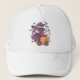 Niedliche Kid Hexe sitzend auf einem Kürbisauto Truckerkappe