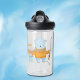 Niedliche Wasserflasche mit einem zauberhaften Eisbär, der eine Angelstange und einen Eimer Fisch hält. Personalisieren Sie es mit dem Namen des Kindes mithilfe der Vorlage . © ArianeC Illustrations-Alle Rechte vorbehalten