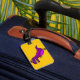 Niedliches und lustiges Design eines lila wütenden Cartoon Dinosaurier. Dieses T-Rex prähistorische Tier ist humorvoll, angesagt und sonderbar und wird Sie zum Lächeln bringen. Dieses Gepäckanhänger kann so angepasst werden, dass es Ihre persönlichen Daten auf der Rückseite enthält.