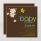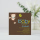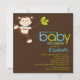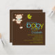 Beginnen Sie Ihre Safari Babydusche mit unserer Baby-Dusche im süßen Dschungel. Unsere Affen-Duscheinladung beinhaltet den süßesten kleinen Affen mit einer Krawatte, die auf einem Set mit Baumzweig auf einem trendigen braunen Hintergrund mit einem Affen-Kotflügel schwingt. Besuchen Sie unseren Shop, um unsere passenden Dankeschön-Karten, Porto und Aufkleber zu sehen. ©Petit Tatti